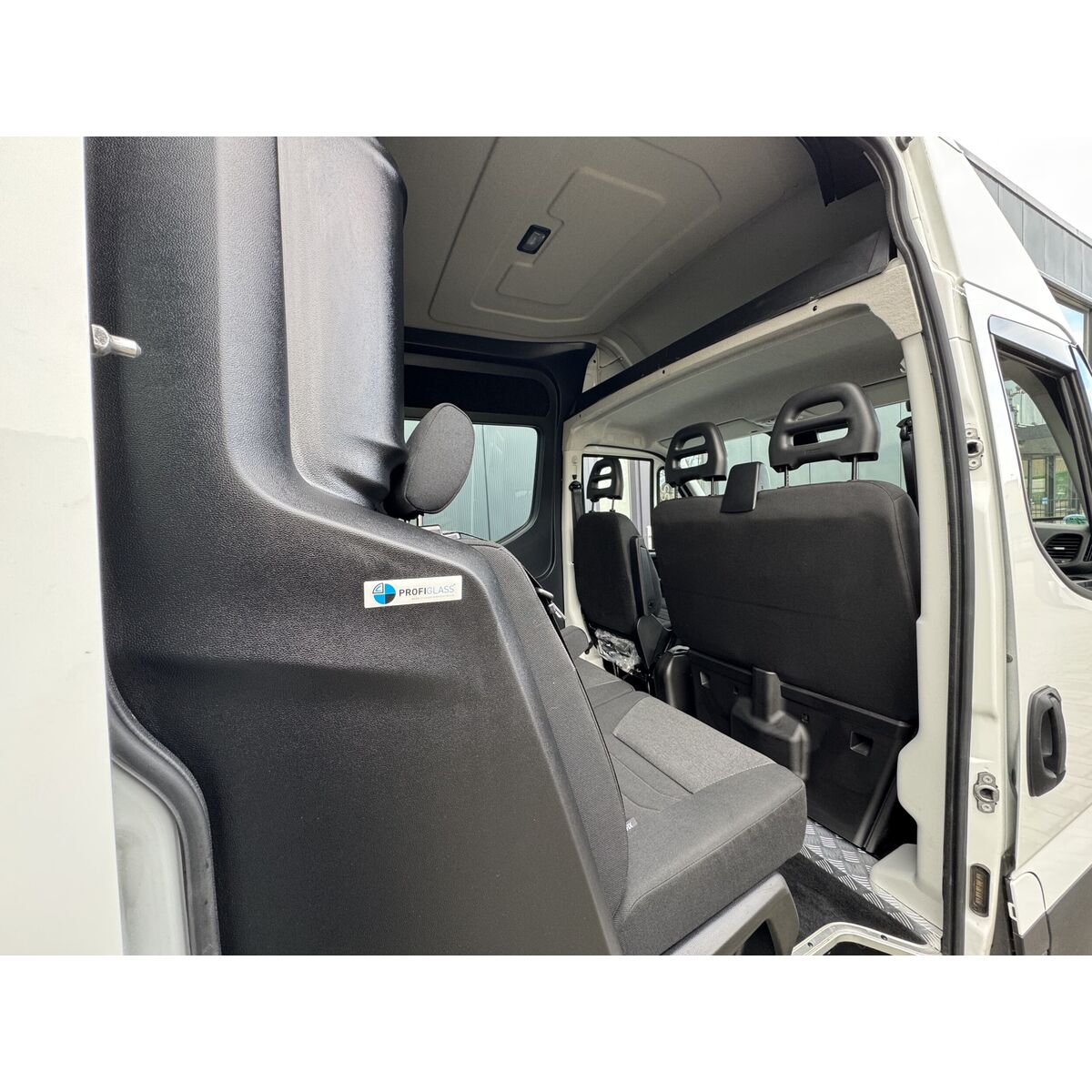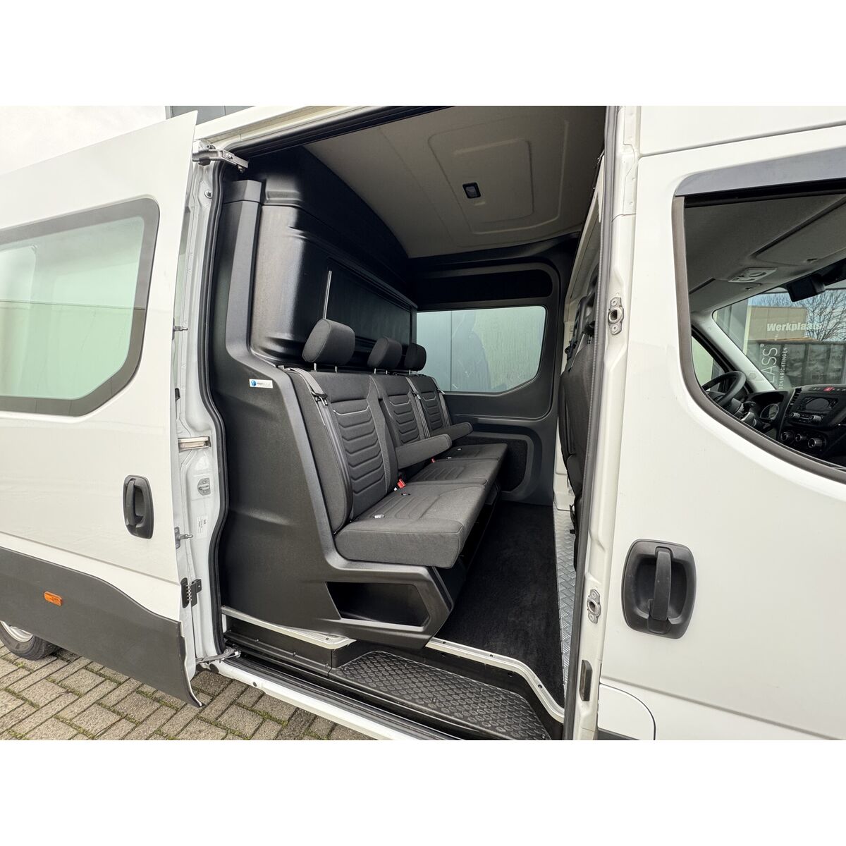 - Drie voorgevormde stoelen voorzien van 3-punts veiligheidsgordels